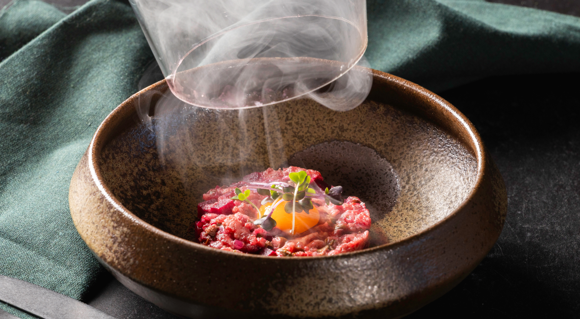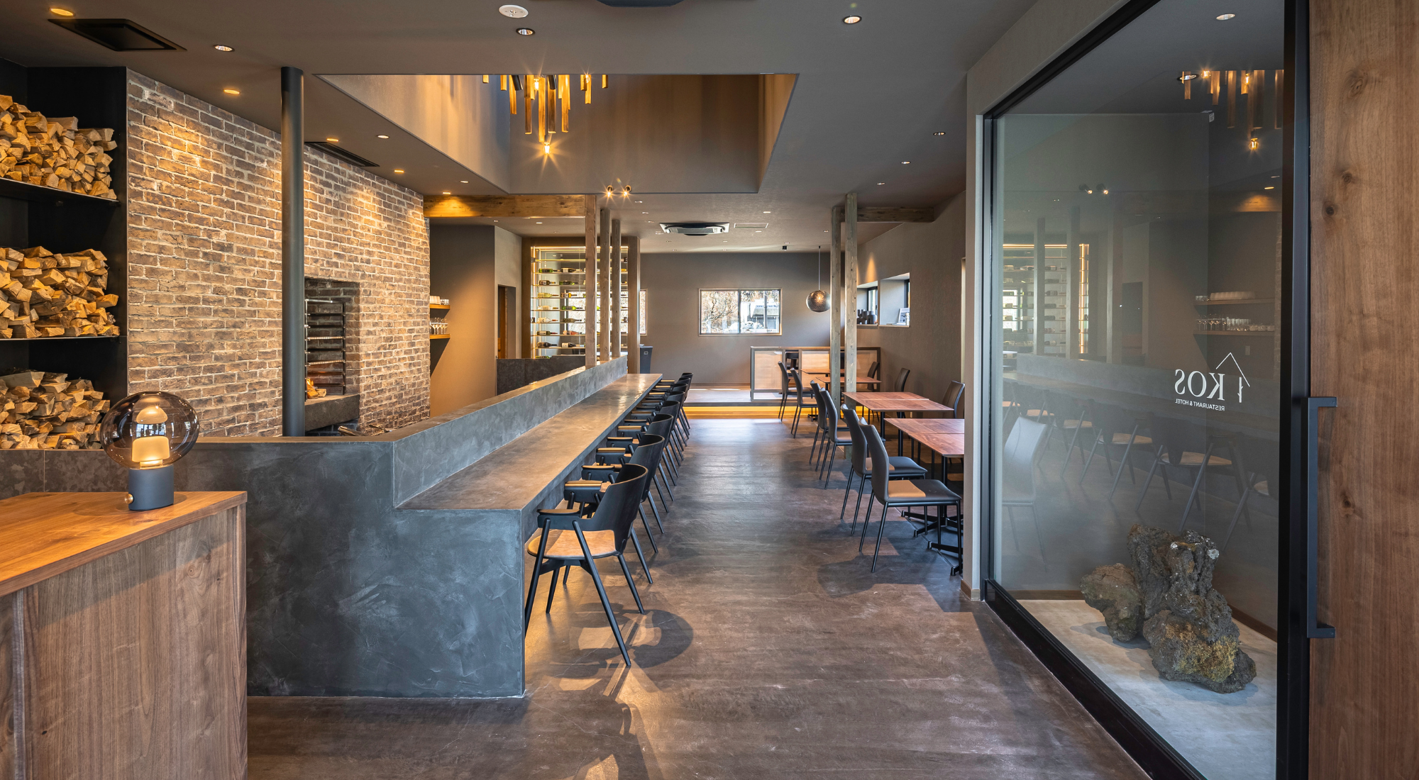 In a restaurant arranged around a wood-fired oven, enjoy a special dining experience enveloped by the warmth of aged materials, the gentle flicker of flames, and the rich aroma of fire.