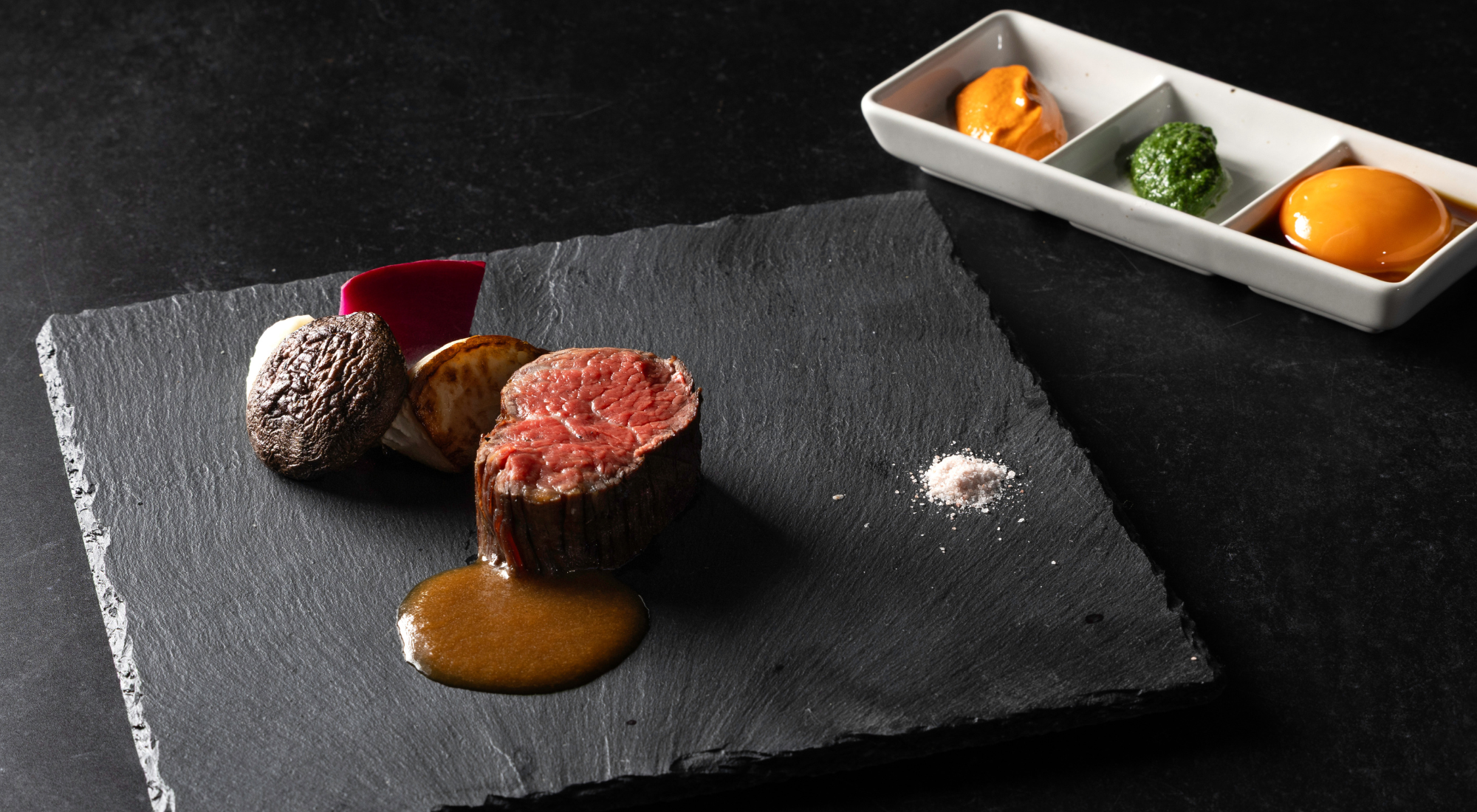 Viande — Koshu beef or local game, clay-pot rice, salad